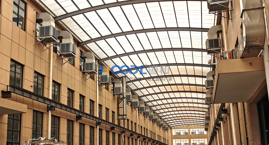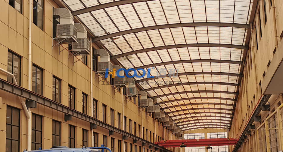 通過(guò)我公司對(duì)該公司的車(chē)間勘察設(shè)計(jì),決定在頂樓車(chē)間兩側(cè)安裝工業(yè)冷風(fēng)機(jī)送風(fēng)降溫,車(chē)間第二層窗戶(hù)安裝負(fù)壓風(fēng)機(jī)進(jìn)行排煙排熱。