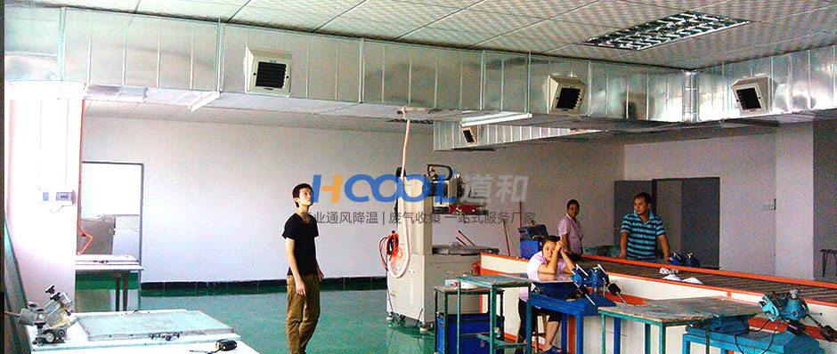 冷風(fēng)機(jī)+送風(fēng)管道進(jìn)行崗位降溫,讓在崗的每一位員工能吹到比電扇更涼爽的風(fēng),同時(shí)促使車間正壓通風(fēng)換氣,排除車間生產(chǎn)過程中一些油墨的味道。安裝調(diào)試完畢后,車間環(huán)境得到了極大的改善和提高。